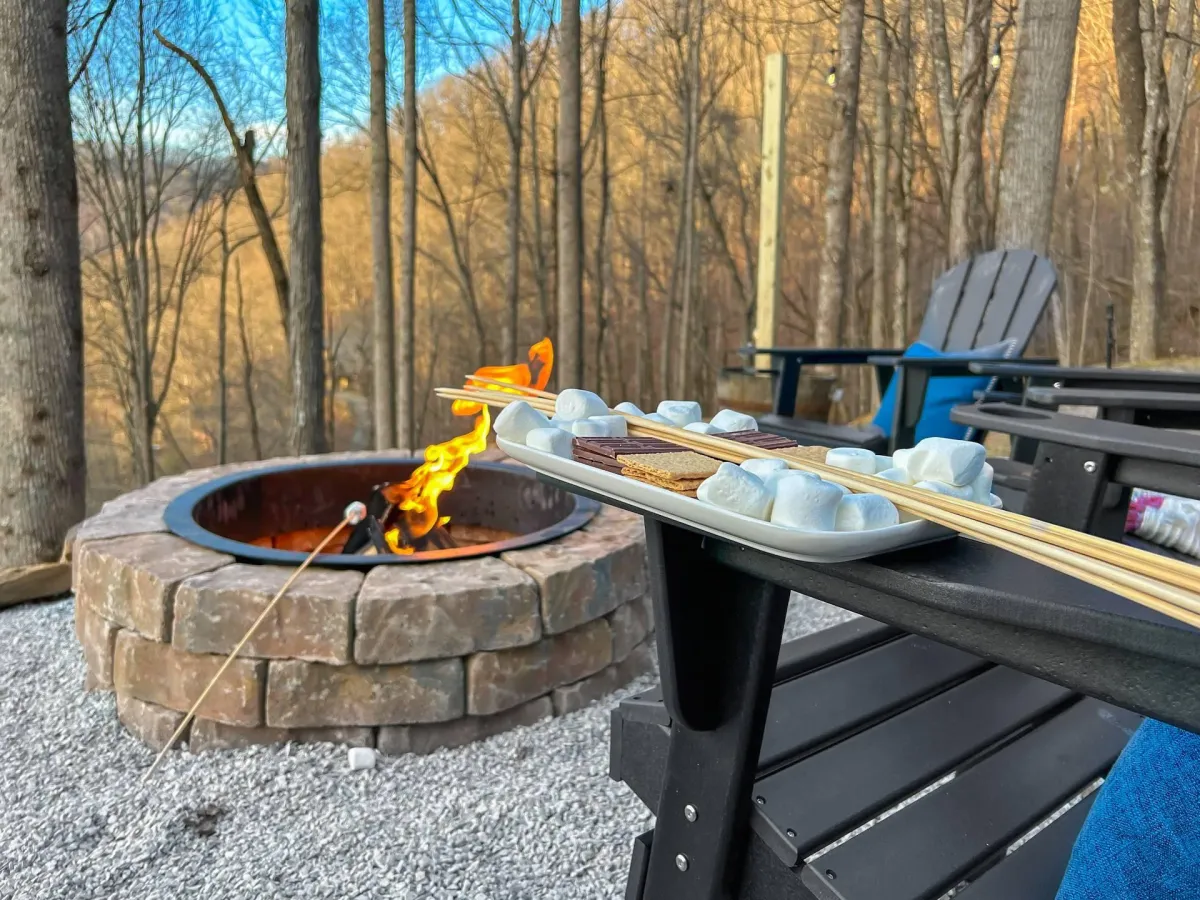 Perhaps one of the best features of this house is the fire pit area. Where else can you sit at the edge of a mountain and have views like this? We added a modern fire pit complete with wood stocked in an open shed. We provide our guest a wheelbarrow to transport the wood to the fire pit area. Enjoy playing your own music under the lights while gazing at the view. We have outdoor speakers complete with in-ground subwoofer to make the experience unforgettable.