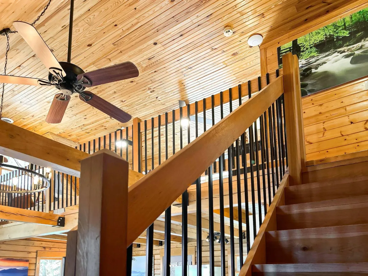As you walk up to the breathtaking views from the large open deck complete with outdoor seating for 6 and additional seating for 2. Enjoy relaxing on the huge wrap around deck and porch! On those chilly days, grab a blanket from the loft and a hot cup of coffee or hot cocoa and soak in the beautiful view from one of the many rocking chairs as you watch the sunrise over The Great Smoky Mountain National Park.